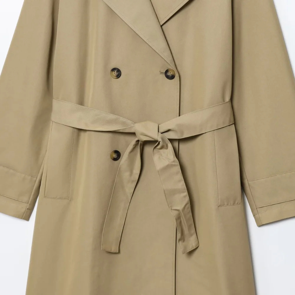 Ce manteau trench beige est un incontournable de la mode féminine. Que ce soit pour le bureau, une sortie citadine ou un rendez-vous élégant, il vous assure une allure sophistiquée et moderne en toutes circonstances.